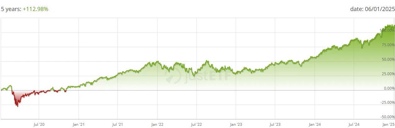 Roční poplatek je o něco vyšší, činí 0,20 % p.a., ale není to nic hrozného, zejména s ohledem na to, že technologické společnosti vždy rostou o něco více než zbytek trhu, takže se vám to teoreticky vrátí ve vyšších výnosech.